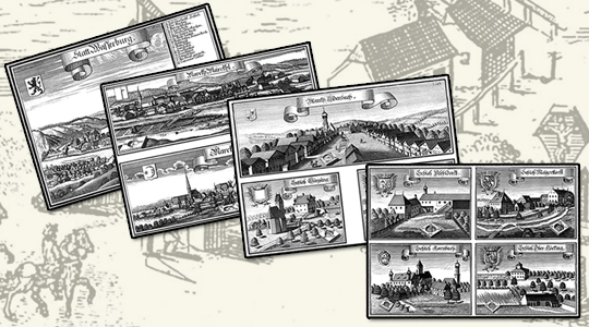 Eine weitere herausragende Quelle sind die knapp 850 Ortsansichten, die der Münchner Hofkupferstecher Michael Wening um 1700 erstellte. Diese detailreichen Kupferstiche zeigen bayerische Städte, Märkte, Schlösser, Burgen, Klöster und weitere bedeutende Gebäude sowie Alltagsszenen aus der Barockzeit. Sie bieten einen authentischen Einblick in die Geschichte Bayerns und sind besonders interessant für alle, die sich für historische Darstellungen und regionale Geschichte begeistern. Die Wening-Ortsansichten sind im JPEG-Format verfügbar und können ebenfalls kostenfrei heruntergeladen werden.
